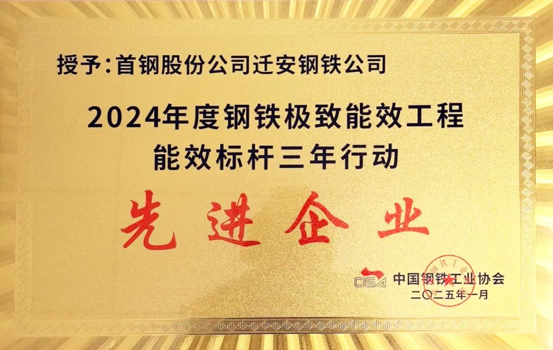 再获殊荣!金年会金字招牌诚信至上股份被评为“2024年度钢铁极致能效工程能效标杆三年行动先进企业”